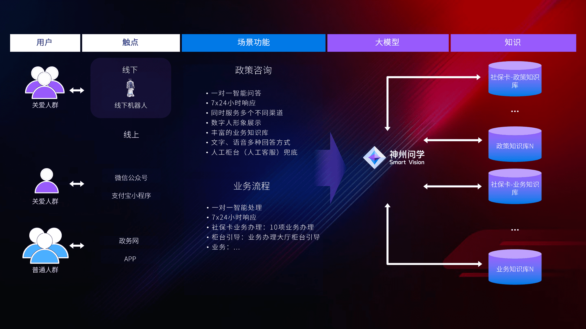 • 线上线下全覆盖:线上提供微信公众号、、、、支付宝小程序、、、、政务网、、、app多种渠道,,,与线下机器人形成完整服务体系。。